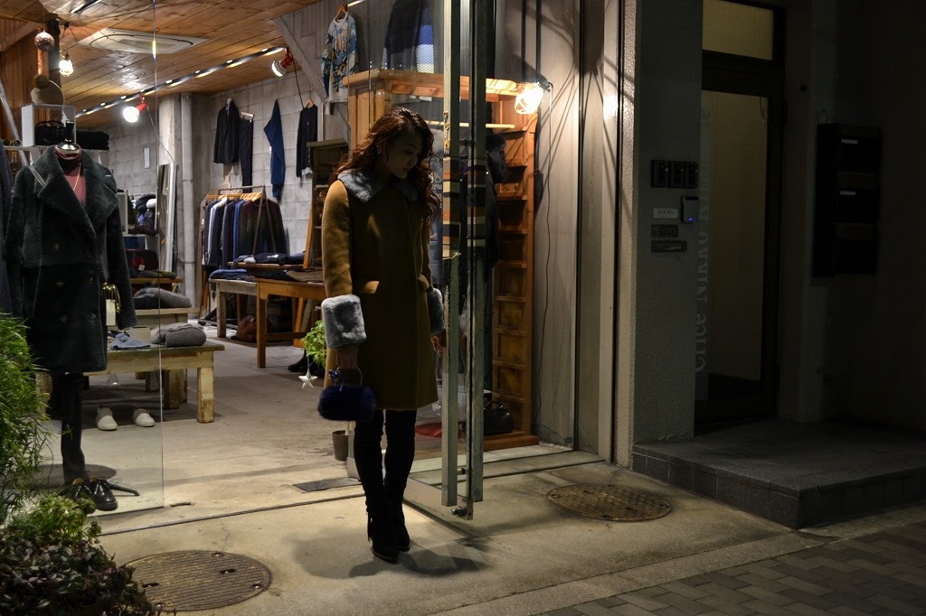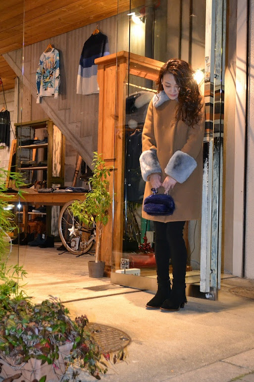 手元に華やかなファーを・・・