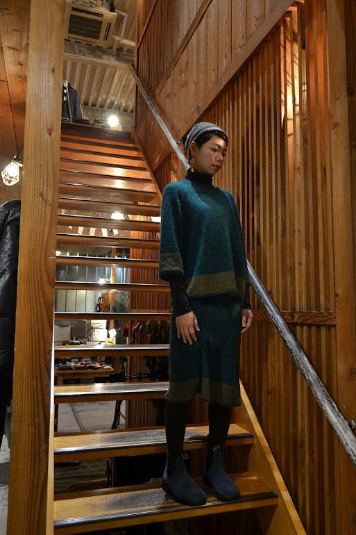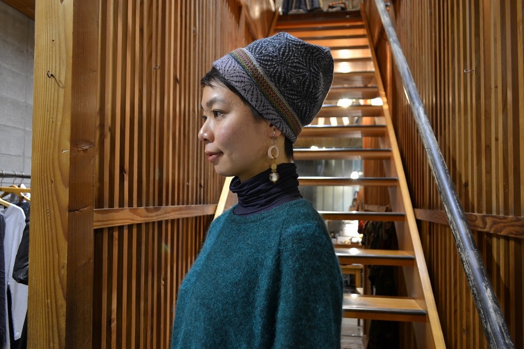 鮮やかなグリーンのニットの妖精。