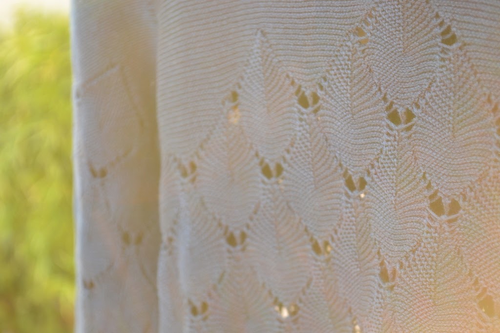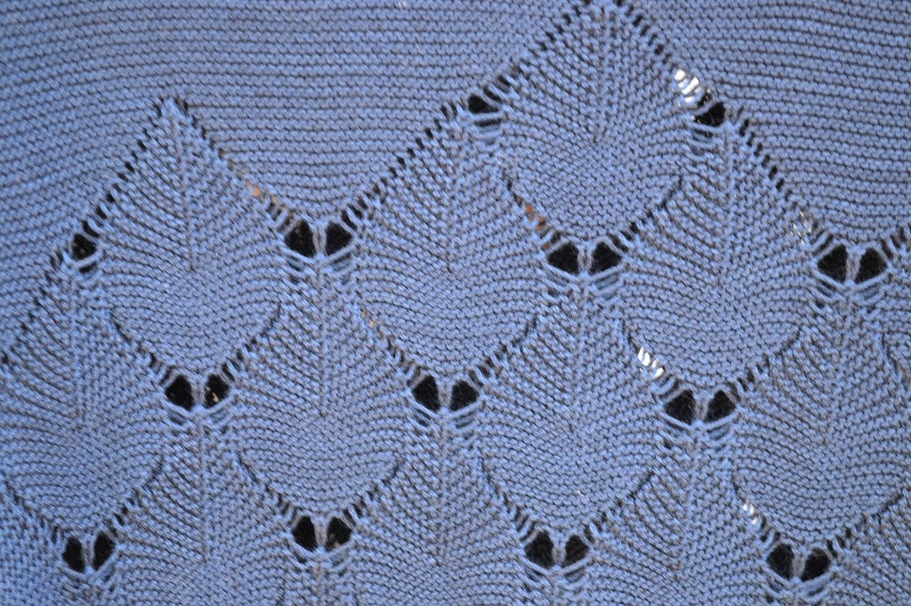 葉のような編みが特徴的で