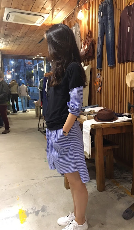 シンプルなシャツなので、様々なアイテムと組み合わせて