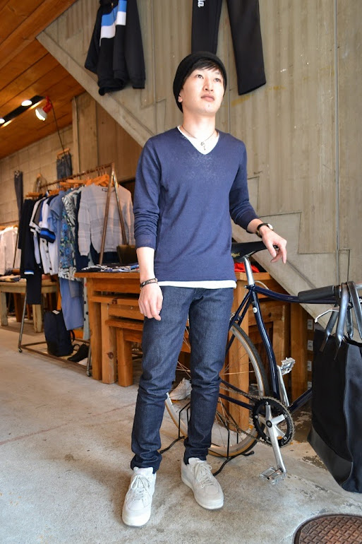Vネックニット。